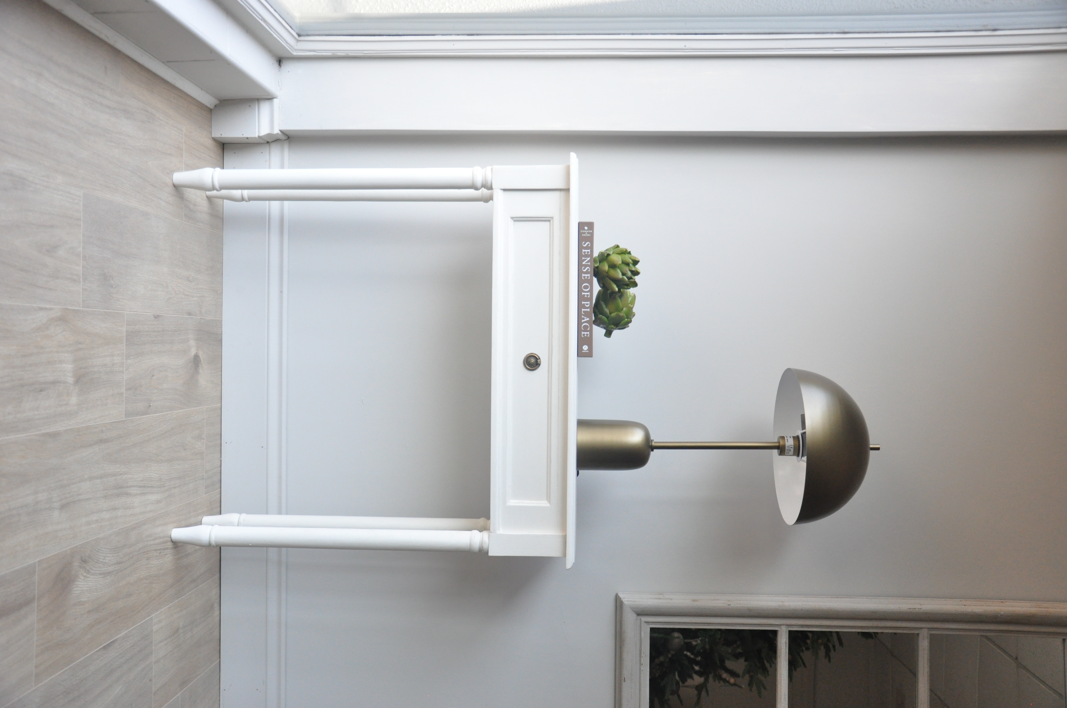 Beautiful white distressed wood console table perfect for small spaces and any decor scheme.