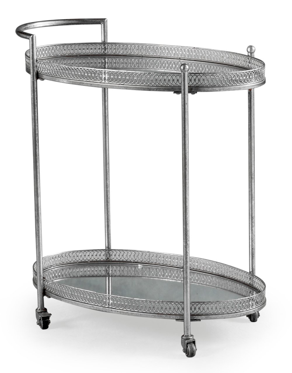 EM98 Antique Silver Metal Trolley With Mirrored Shelves