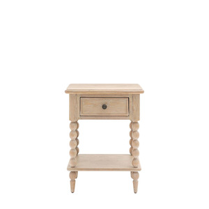 The Artisan 1 Drawer Bedside pairs practicality with timeless design. Featuring the collection's signature bobbin-turned legs, a lower shelf, and single drawer with a simple round handle, it offers convenient storage while adding rustic elegance to the bedroom. Perfect for keeping essentials close at hand.