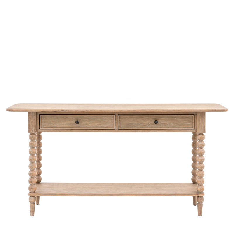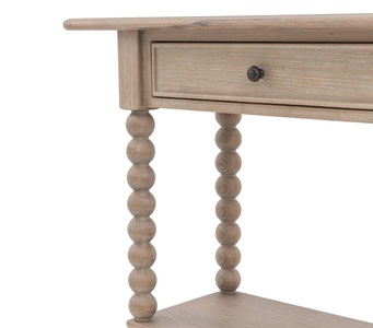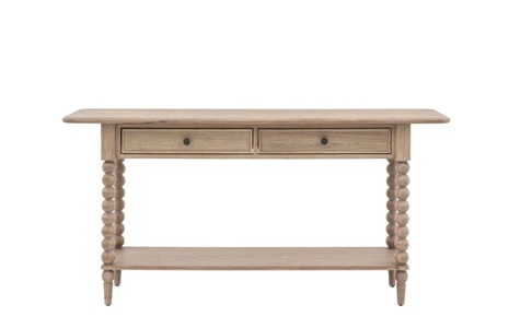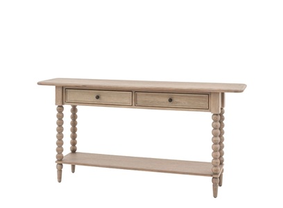 Elegant and practical, the Artisan Console Table brings warmth and character to hallways or living rooms. Designed with slim bobbin-turned legs and natural wood finish, it features useful storage drawers and a refined silhouette, blending rustic charm with timeless design.