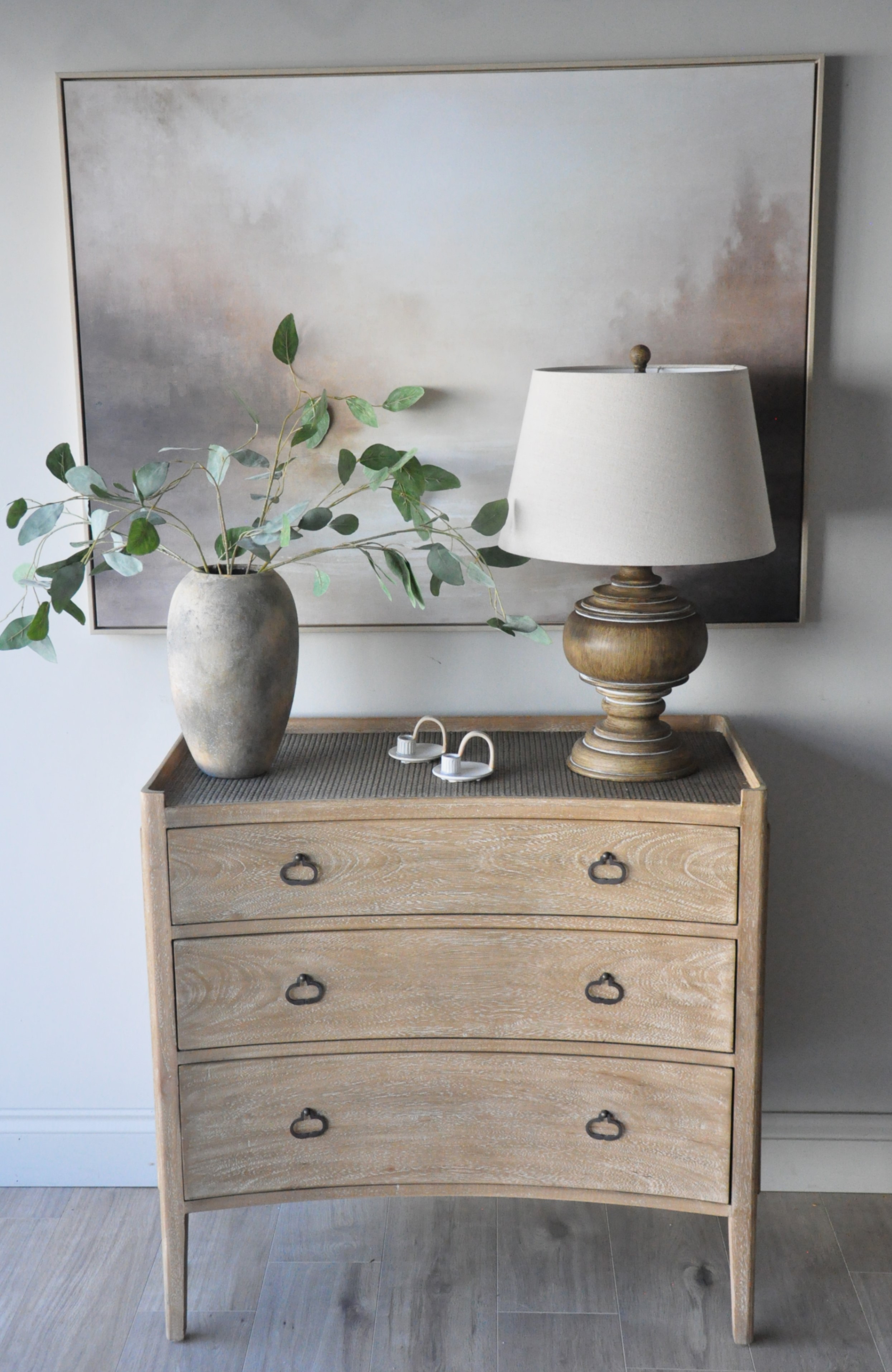 The Barkley chest of drawers blends classic lines with contemporary warmth. Crafted in a natural wood finish, it features a gently curved front and a three spacious drawers with antique-style ring pull handles. Ideal for bedrooms or living areas, this timeless piece offers both elegant style and practical storage.