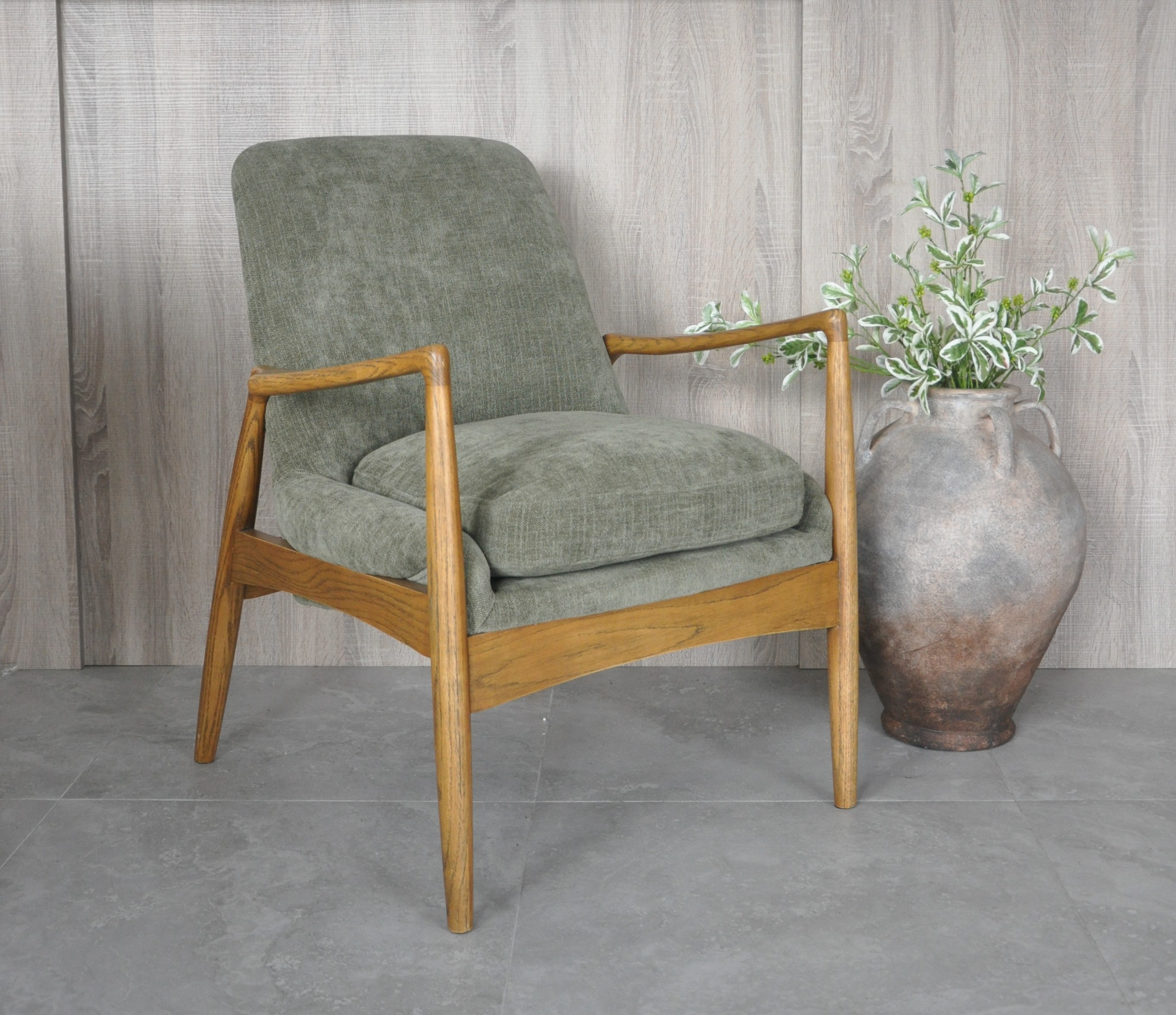 The Bentley Chair in Sage Green blends timeless mid-century style with modern comfort. Crafted with a beautifully shaped solid wood frame, it features smooth, curved arms and tapered legs for a classic yet contemporary look. The soft sage green upholstery adds a touch of calm sophistication, while the deep seat and plush cushioning ensure lasting comfort. Perfect for living rooms, reading corners, or bedrooms, this piece offers both style and relaxation in equal measure.