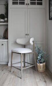 The Blake Dining Chair, upholstered in Elephants Breath Faux Leatherette with beautiful pleated detailing with oak antiqued legs. A very on-trend, and stylish seating solution for your space. Also available as a dining chair.