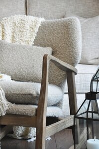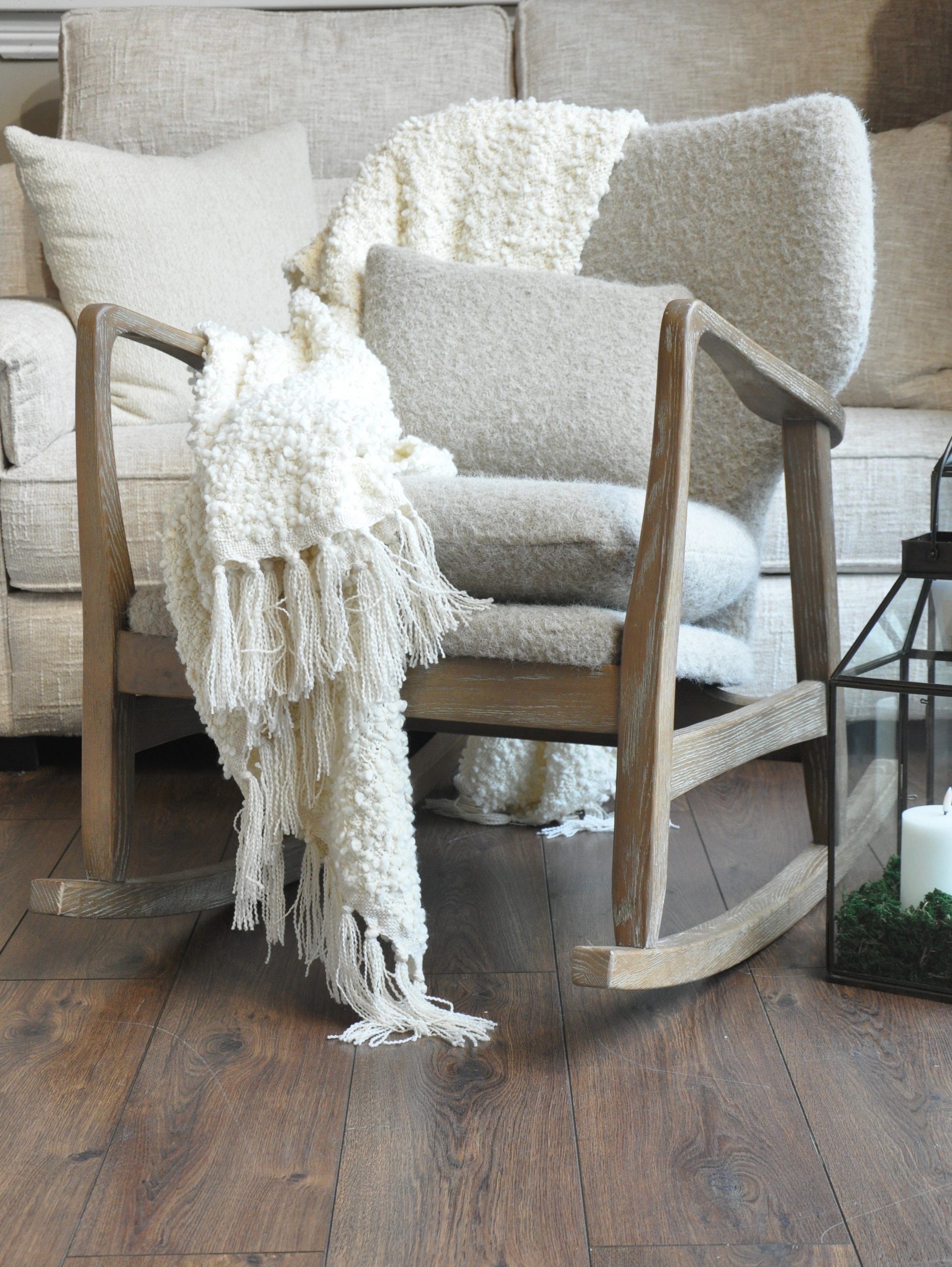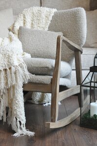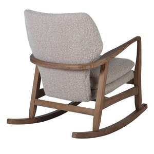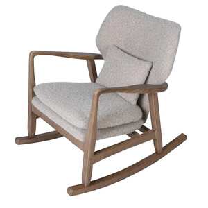 The Elliot Modern Rocking Chair combines mid-century charm with contemporary comfort. Featuring a sculpted solid wood frame and gently curved rockers, it is paired with plush, upholstered cushions in a textured and stylish seating experience.