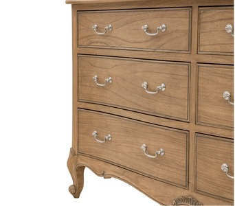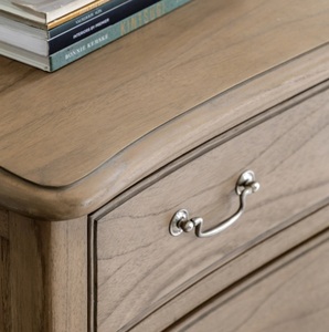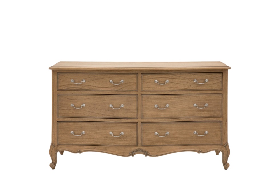 The Esme Collection blends French-inspired elegance with a gently weathered finish, bringing timeless charm to the home. Defined by graceful curves, carved detailing, and a soft, natural tone, each piece combines style with practicality. From beautifully upholstered beds to chests, wardrobes, and bedside tables, the Esme range offers versatile storage and refined design, making it a perfect choice for both classic and contemporary interior.