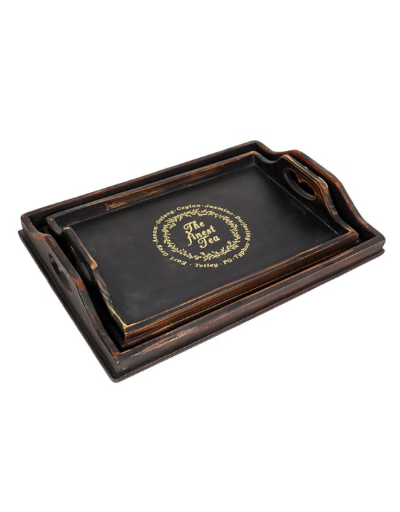 "Finest Tea" Antique Wooden Tray Medium