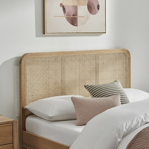 The Juliette Bed Combines modern simplicity with natural charm, featuring a beautifully crafted rattan headboard set within a warm oak frame. Its clean lines and organic textures create a calm, inviting atmosphere, perfect for contemporary and relaxed interiors.