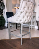 The Kensington collection is sure to make a bold statement with its stunning deep buttoned design. The padded seating and comfortable curved back rest is wrapped in a luxurious fabric with a studded design, and button detailing. The beautifully designed chair can be used in any interior setting, dining, living or bedroom.