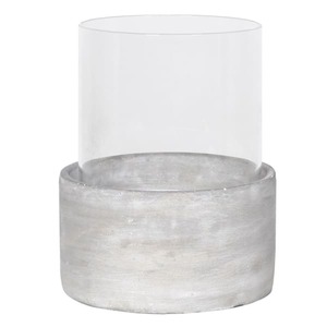 Bold and beautifully balanced, the Medium Round Glass And Cement Hurricane is a statement piece that blends modern elegance with raw, natural texture. The tall, clear glass cylinder offers the perfect showcase for candlelight, while the solid cement base anchors the design with industrial charm. Ideal for creating cozy ambiance indoors or outside.