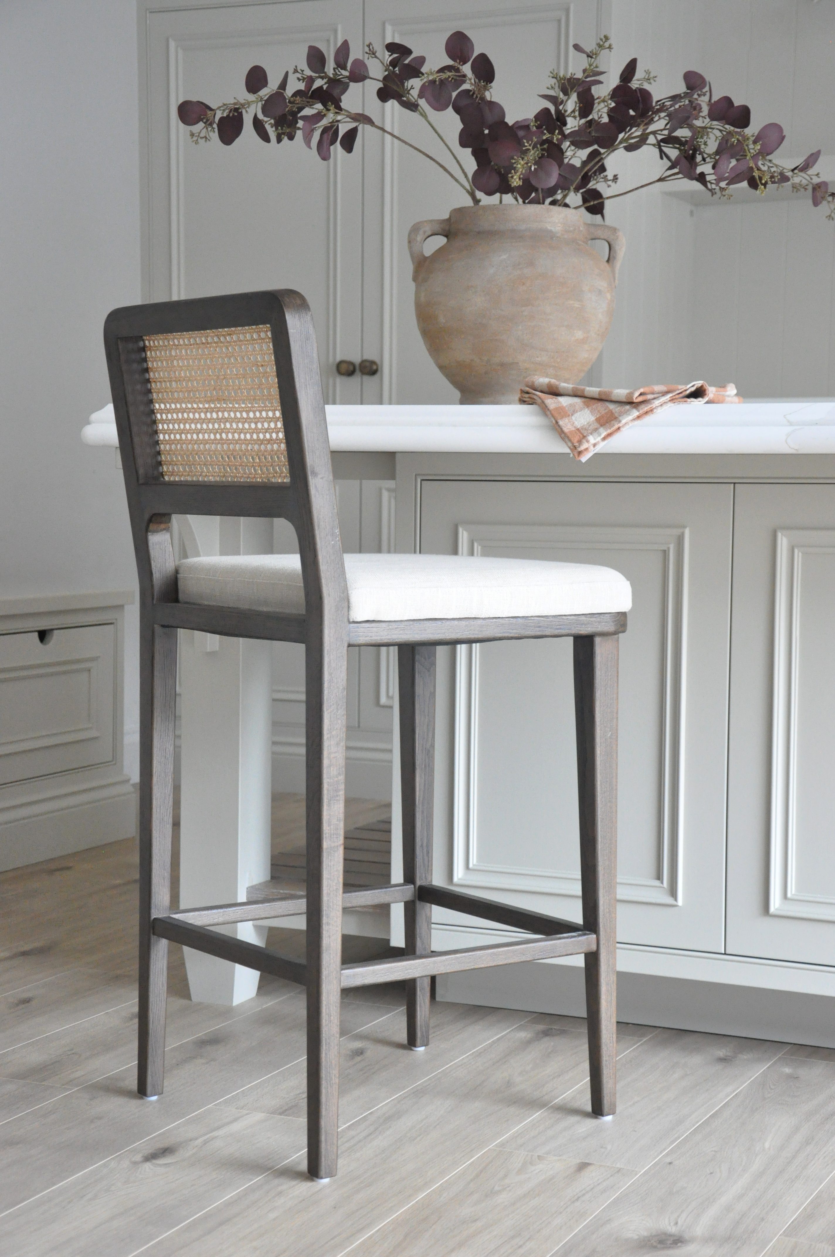 The Paisley collection brings a modern touch to everyday living. Constructed from solid timbers and detailed with contrasting cane effect panelling, this piece boasts artistic flair. Finished with a padded, linen blend seat for comfort, this piece will work wonderfully amongst a neutral colour palette.
