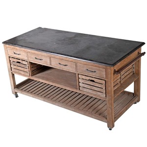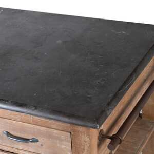 Blending industrial style with practical function, the Soho Kitchen Utility Unit Features a durable blue stone top, perfect for food prep or serving. Crafted from reclaimed wood, it includes multiple drawers and wooden crates for ample storage, plus a lower slatted shelf for extra kitchens essentials. Fitted with castors for easy mobility, this piece is ideal for busy kitchens or open-plan living spaces.