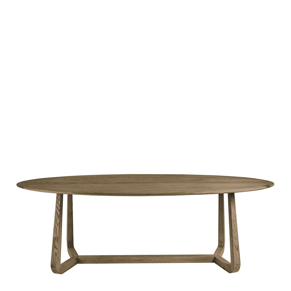 Crafted with a soft natural wood finish, the Tyrell Dining Table brings warmth and understated elegance to your space. Its gently curved oval top and sculptural base create a clean contemporary look. At 200 cm, it comfortably seats 6 - ideal for everyday dining or casual entertaining.