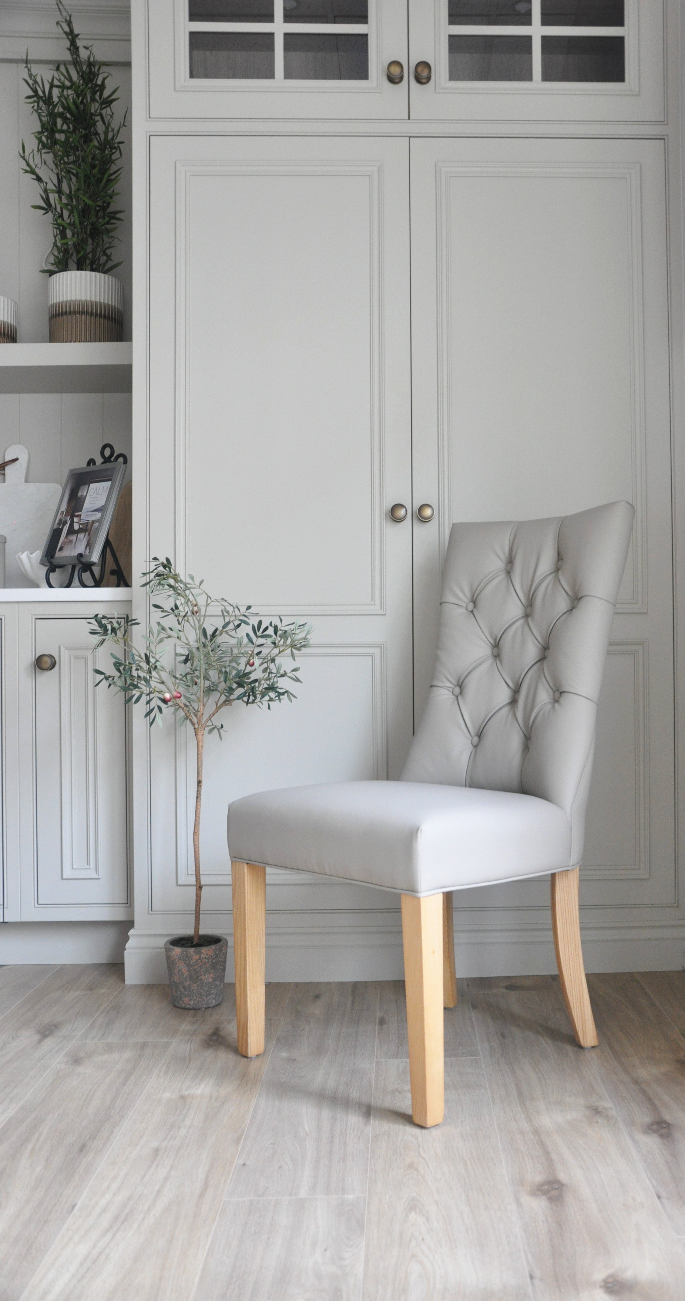 Zara Dining Chair in Elephants Breath Faux Leather with Natural Oak Leg
